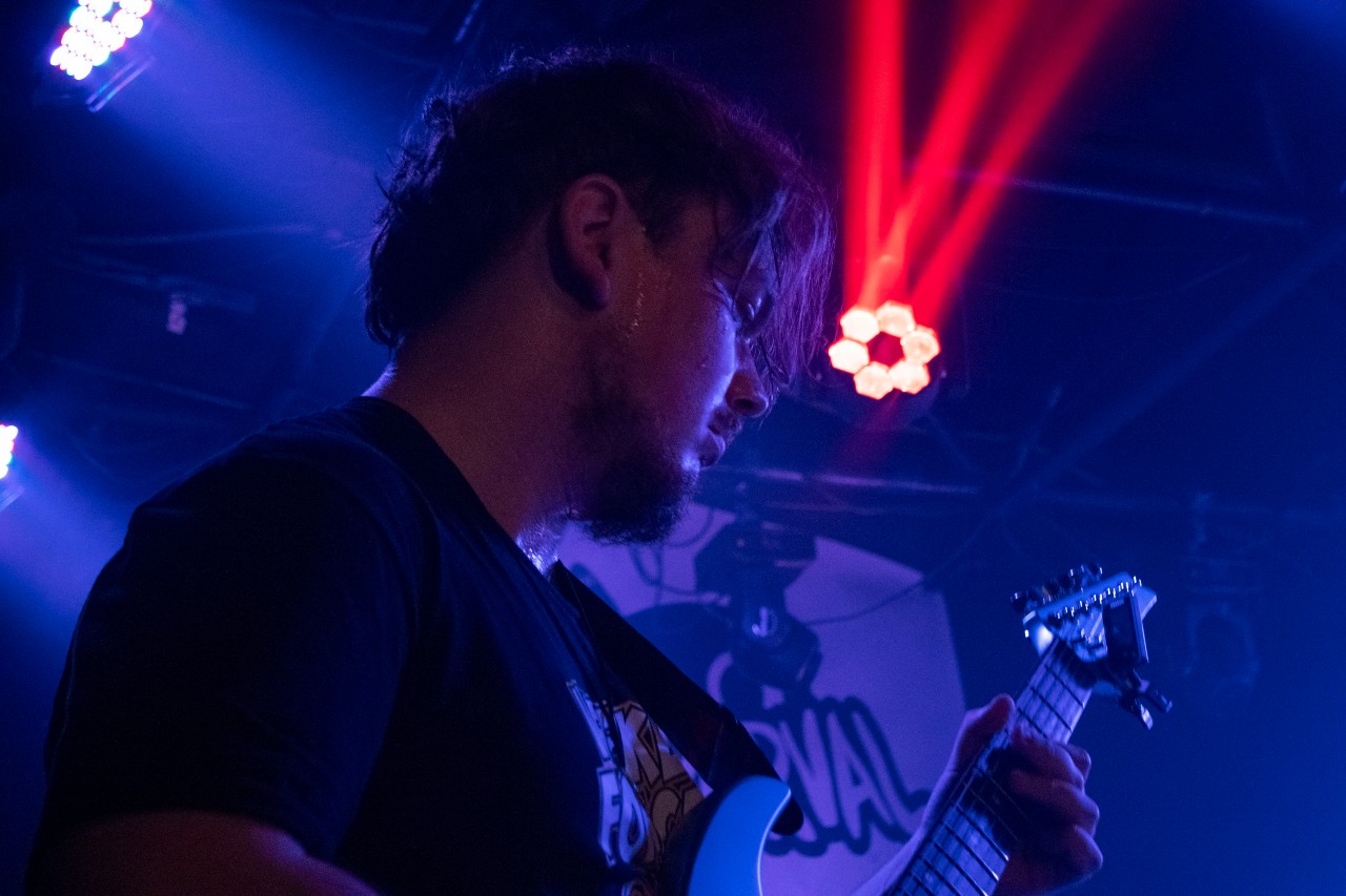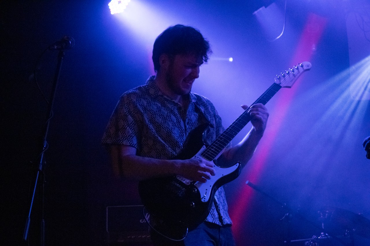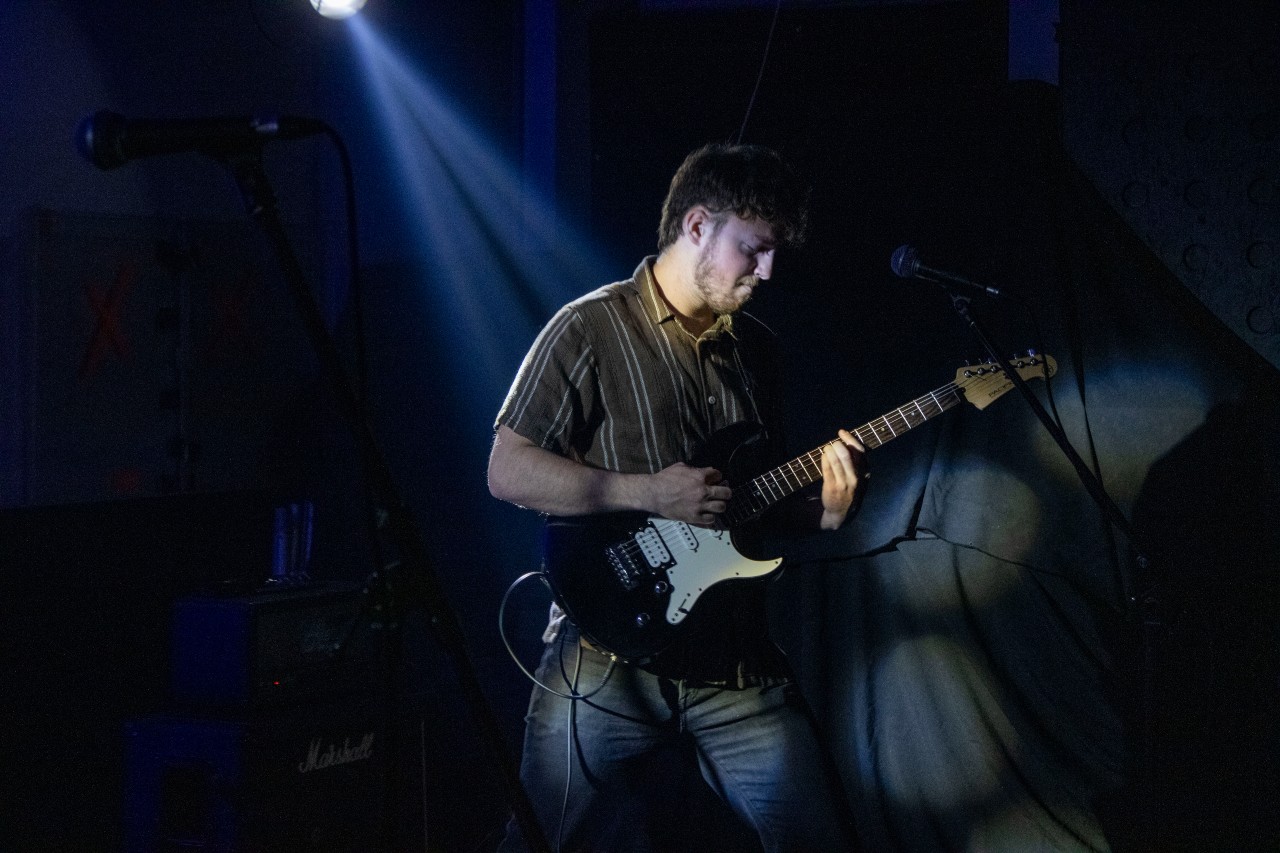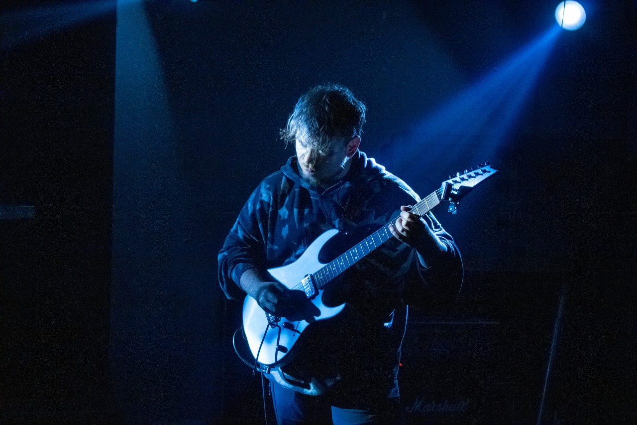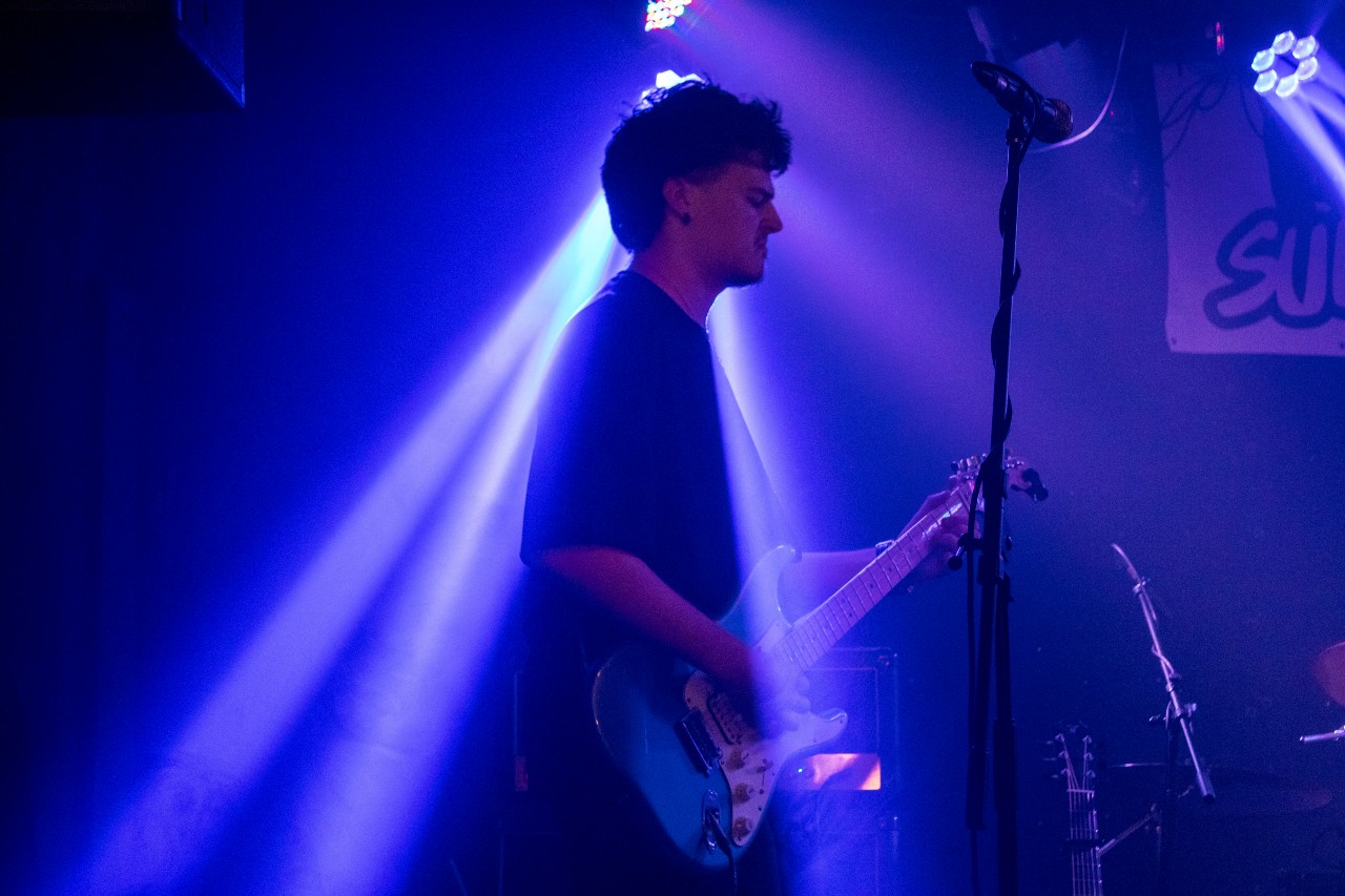 Pulski bend Audioclot otvorio je večer nastupom nalik na psihodeličnog tunela — snažna distorzija i razliveni rifovi. Zvuk im je bio gust, gotovo opipljiv, kao da je visio između publike i stropa, vrtio se spiralno pa ponovno uranjao u duboke, prljave bas linije. Od prvog tona bilo je jasno da ovo nije obična uvodna svirka. Članovi koji su zaslužni za jedinstveni zvuk su Lucijan Boljun (gitara), Maro Pavlinović (bubnjevi) i Frane Peršić (vokal). Zidovi kluba počeli su vibrirati pod težinom njihovog zvuka, dok su se slojevi distorzije slagali jedan na drugi, gradeći zvučni zid kroz koji je publika rado prolazila. Njihov set bio je čisto psihodelično iskustvo, vođeno gitarama koje nisu “svirale”, nego uvlačile — melodične kad treba, ali uvijek spremne razvući stvarnost u valove šuma. Svjetlosna pratnja bila je precizna i hipnotička: duboke purpurne nijanse, povremene eksplozije crvene i plavi filteri koji su zamaglili granicu između bine i publike. Ispred pozornice nije bilo praznine. Prvi redovi uz bend, pokreti publike nisu bili divlji i nije bilo potrebe za skakanjem. Njištanje vrata gitare i pulsirajući bas radili su dovoljno. Prva izvedba njihove nove precizno nelinearne pjesme “Osma” nije ulazila kroz uho, već ravno kroz centar ravnoteže. Audioclot njome pokazuje da zna riskirati i zna gdje to vodi: u prostor gdje eksperiment nije poza, nego alat za stvaranje nečeg što se ne zaboravlja.