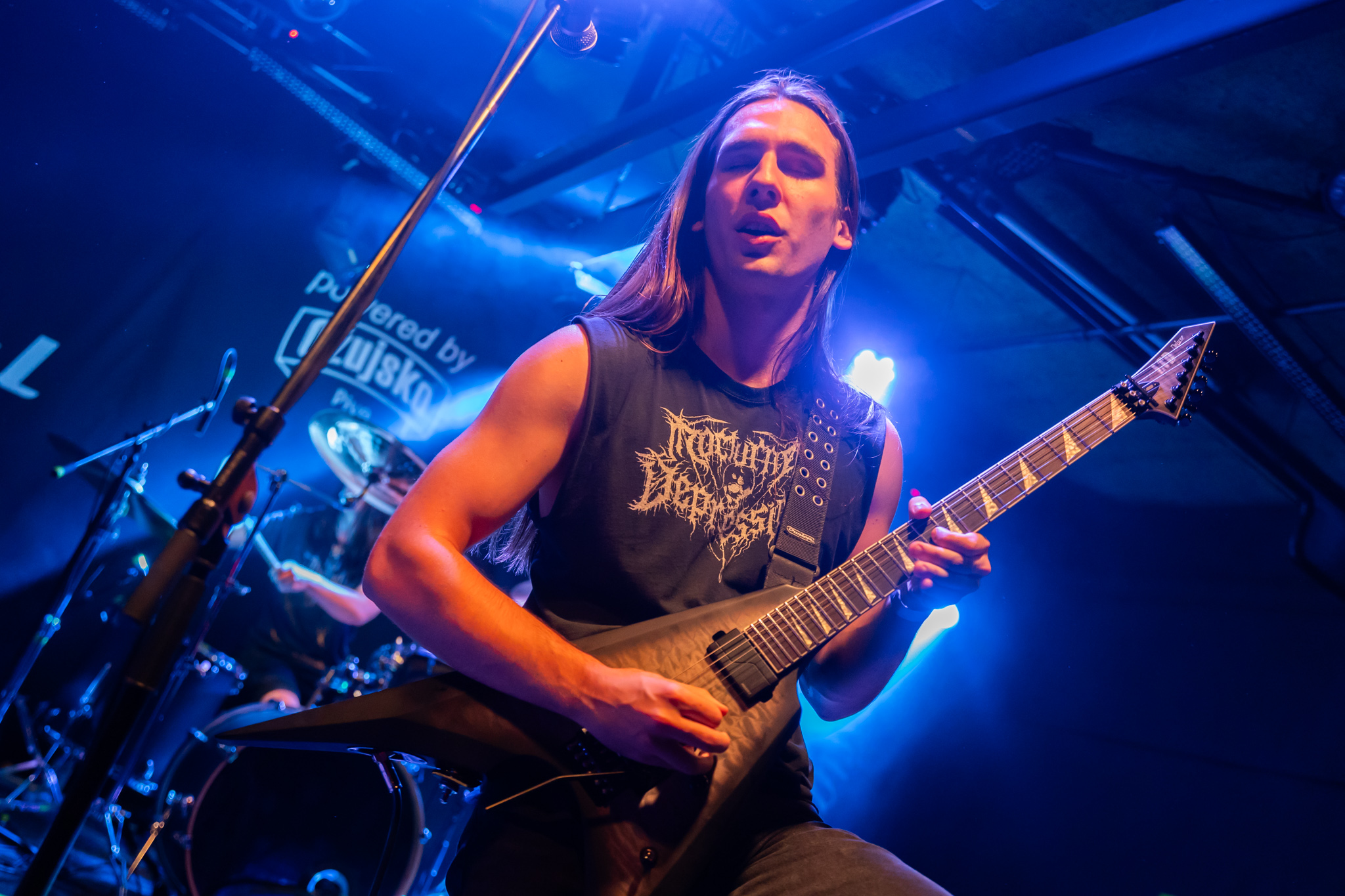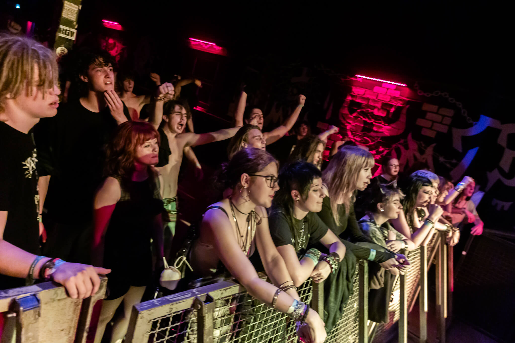 Večer je zatvorila Hostija, zagrebački black metal trio koji je na sceni od 2024. Fran na gitari, Ana na basu i ponovno, neumorni Ian na bubnjevima, a ovdje je i u ulozi glavnog vokalista. Anin odgovor na moje pitanje gdje je set lista bio je “u glavi”. Njihov većinom autorski repertoar i dvije obrade protekao je u malo mirnijoj atmosferi od prethodna dva nastupa. Je li se publika malo umorila? Hostija vlada pozornicom – svojom glazbom i dinamikom zauzimaju je nekako ležerno i istovremeno upečatljivo. Nakon dva prethodno bombastična nastupa publici je trebalo malo da se ponovo uigra, bolje rečeno Hostija je donijela atmosferu poput transa. S nešto sporijim pjesmama nastupili su valovi ritmičnog headbanganja u skladu sa kretanjem Frana i Ane. Hostija je svojom energijom bila poput olujnog, a na trenutke samo valovitog mora. Publika ih je počastila s glasnim i energičnim uzvicima nakon svake pjesme. Na kraju, kao i svi prethodni, iz poštovanja, a i želje da još jedan Superval+ ne završi, dobili su glasan Hoćemo još! nakon kojeg su završili s nevjerojatnim Ianovim bubnjarskim solom, skromnim naklonom i zahvalama.